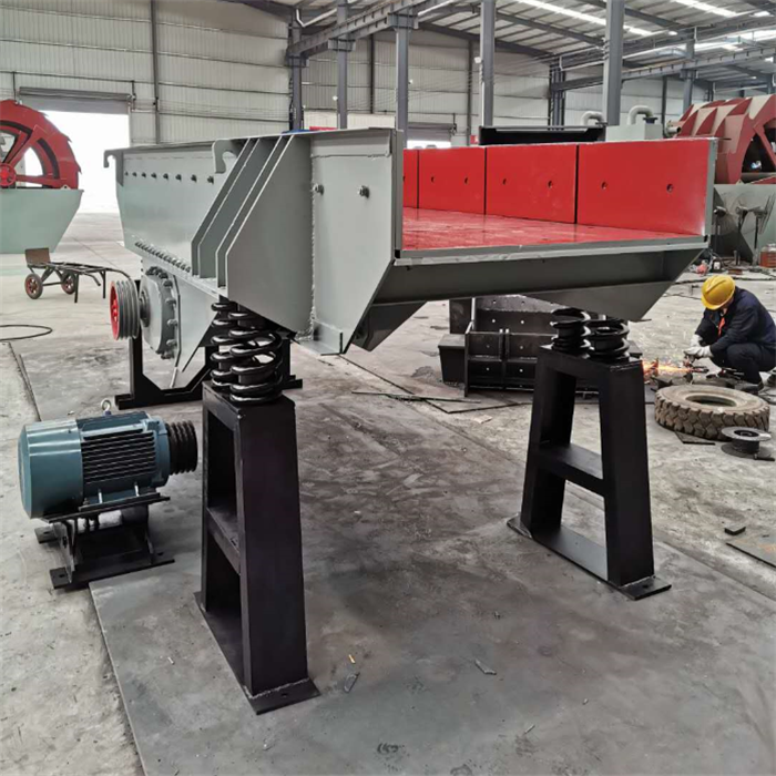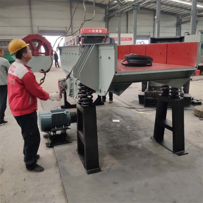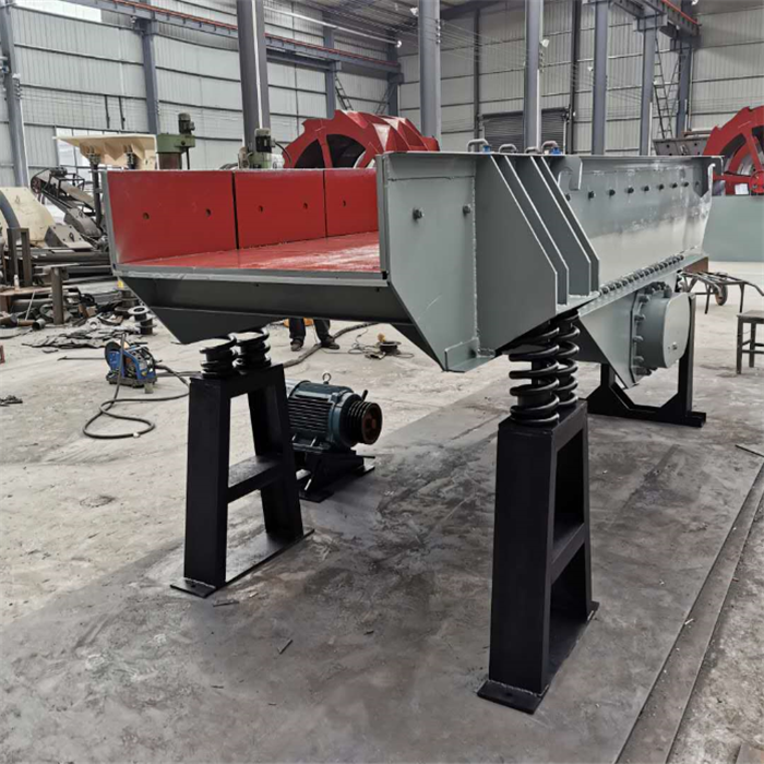 振動給料機又稱振動喂料機,在生產(chǎn)流程中可把塊狀、顆粒狀物料從貯料倉中均勻、定時、連續(xù)地給到受料裝置中去,在砂石生產(chǎn)線中可為碎石機械連續(xù)均勻地喂料,并對物料進行粗篩分,廣泛用于冶金、煤礦、選礦、建材、化工、磨料等行業(yè)的破碎、篩分聯(lián)合設(shè)備中。